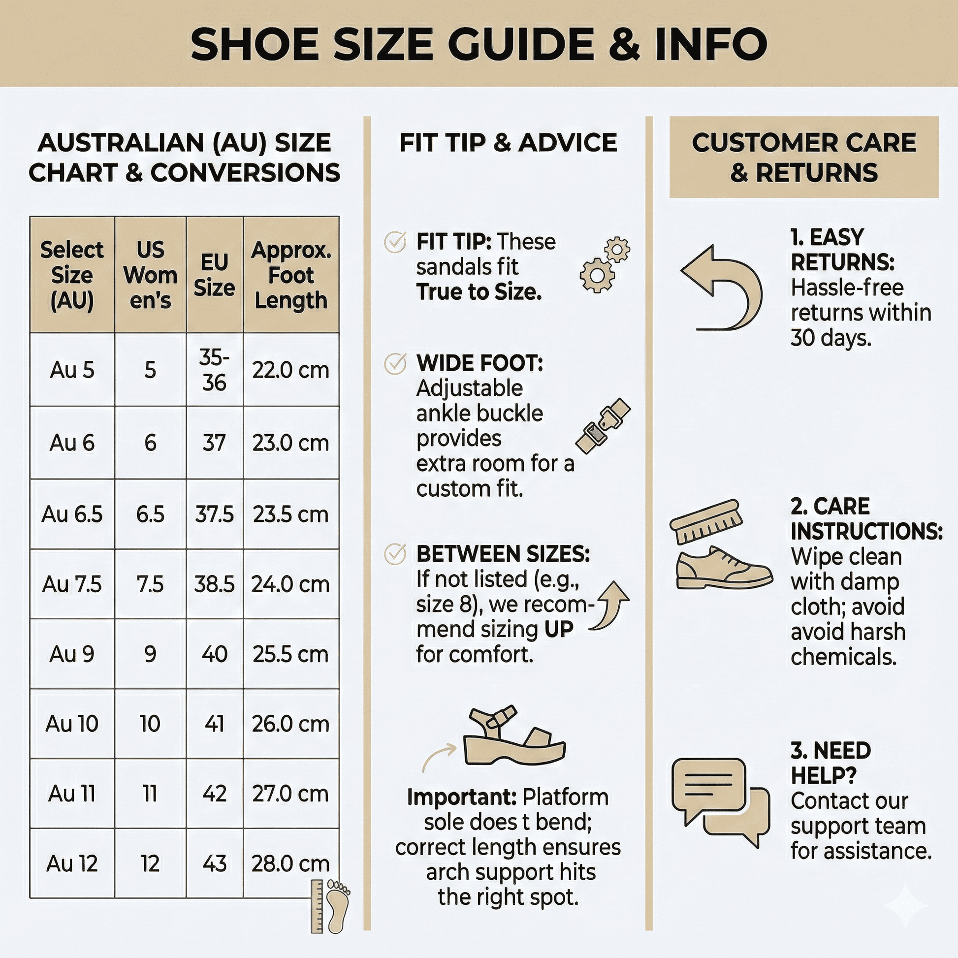 We offer a 30-day money-back guarantee on all footwear. Items must be unused, in original condition, and returned with all packaging.